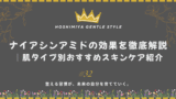 - ナイアシンアミド:セラミド産生を促し、肌荒れ予防に。